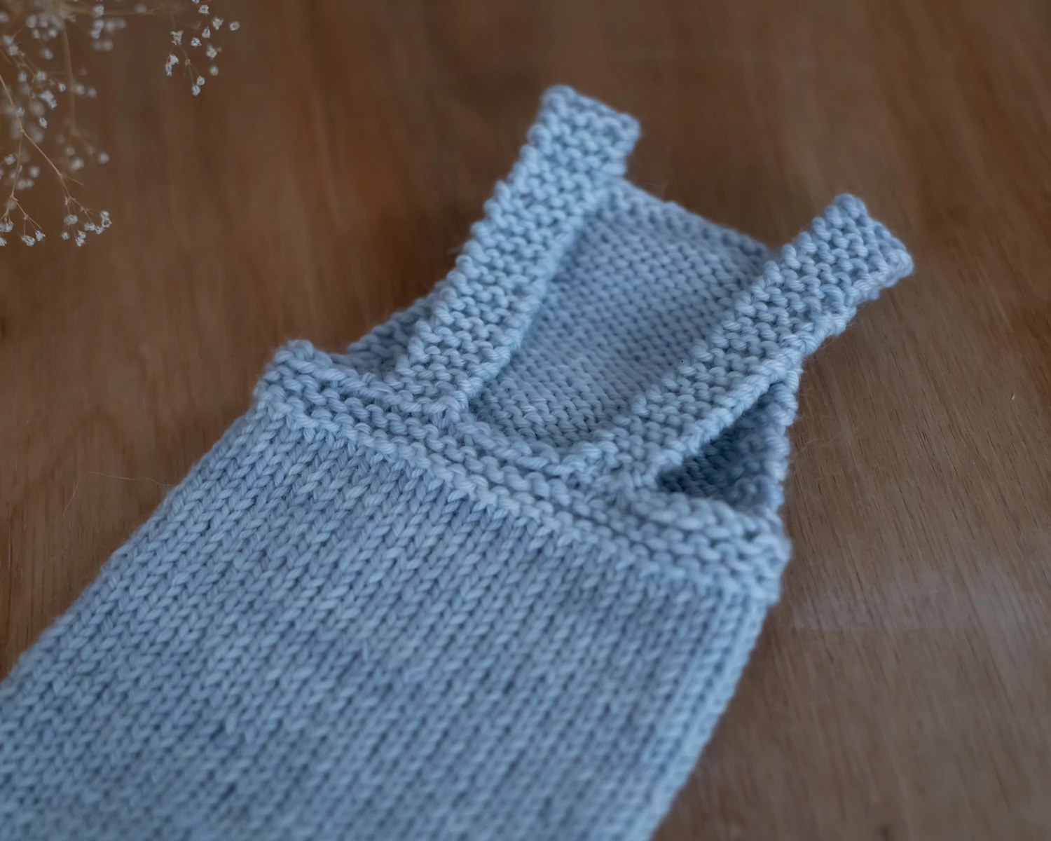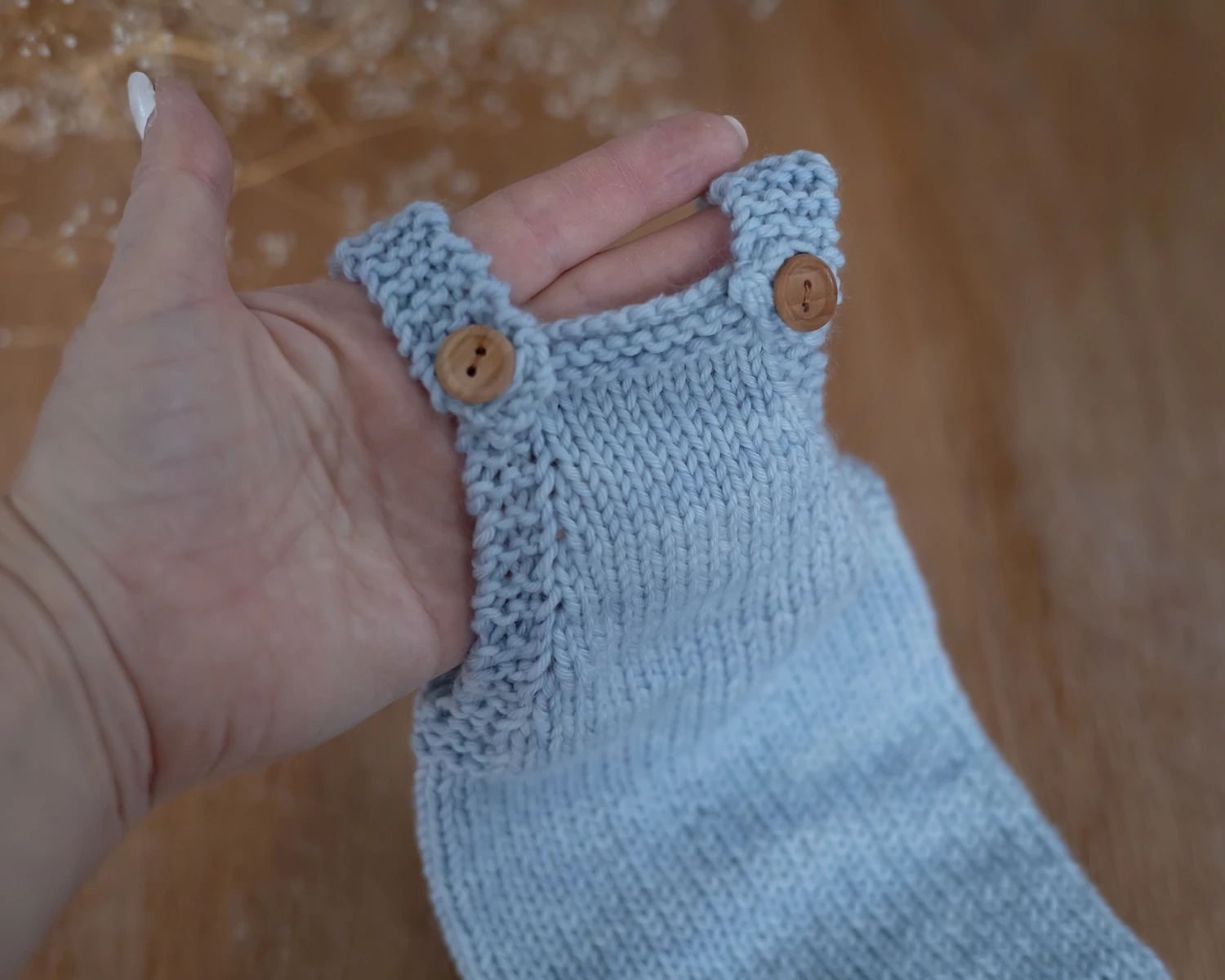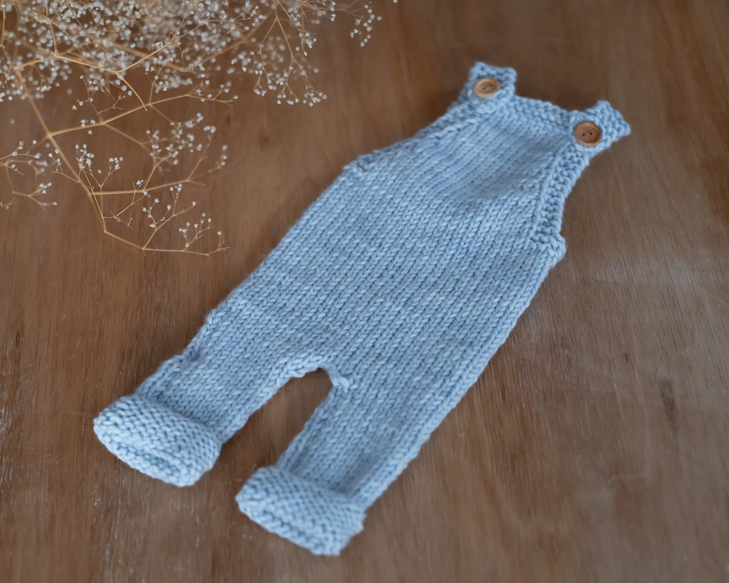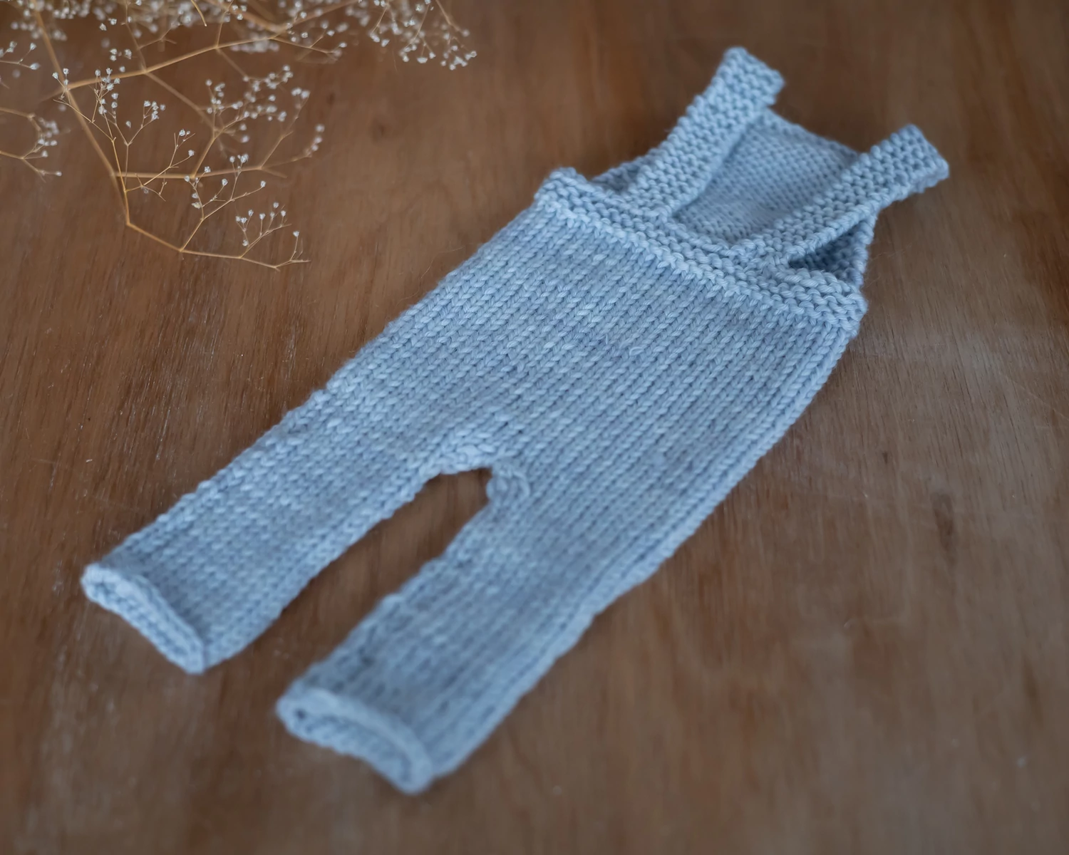 Kék kézzel kötött kantáros nadrág - újszülött fotózáshoz