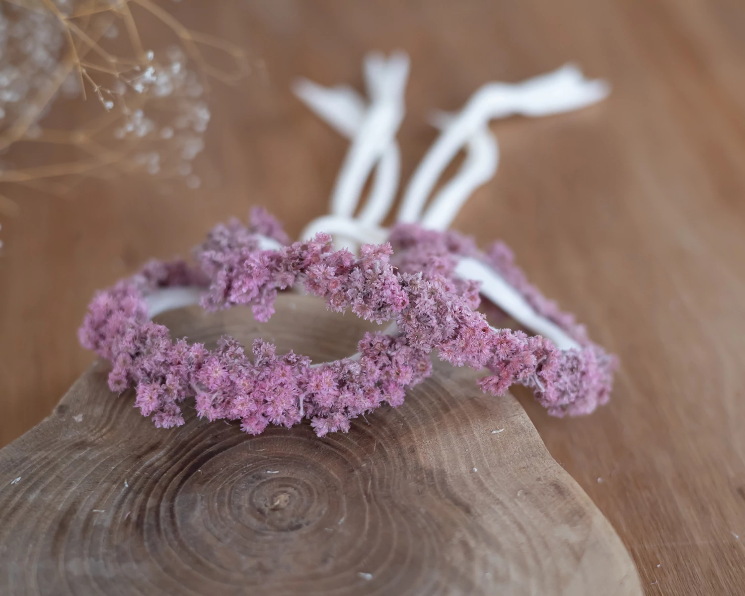 Mályva koszorú jellegű fejpánt megkötős rögzítéssel