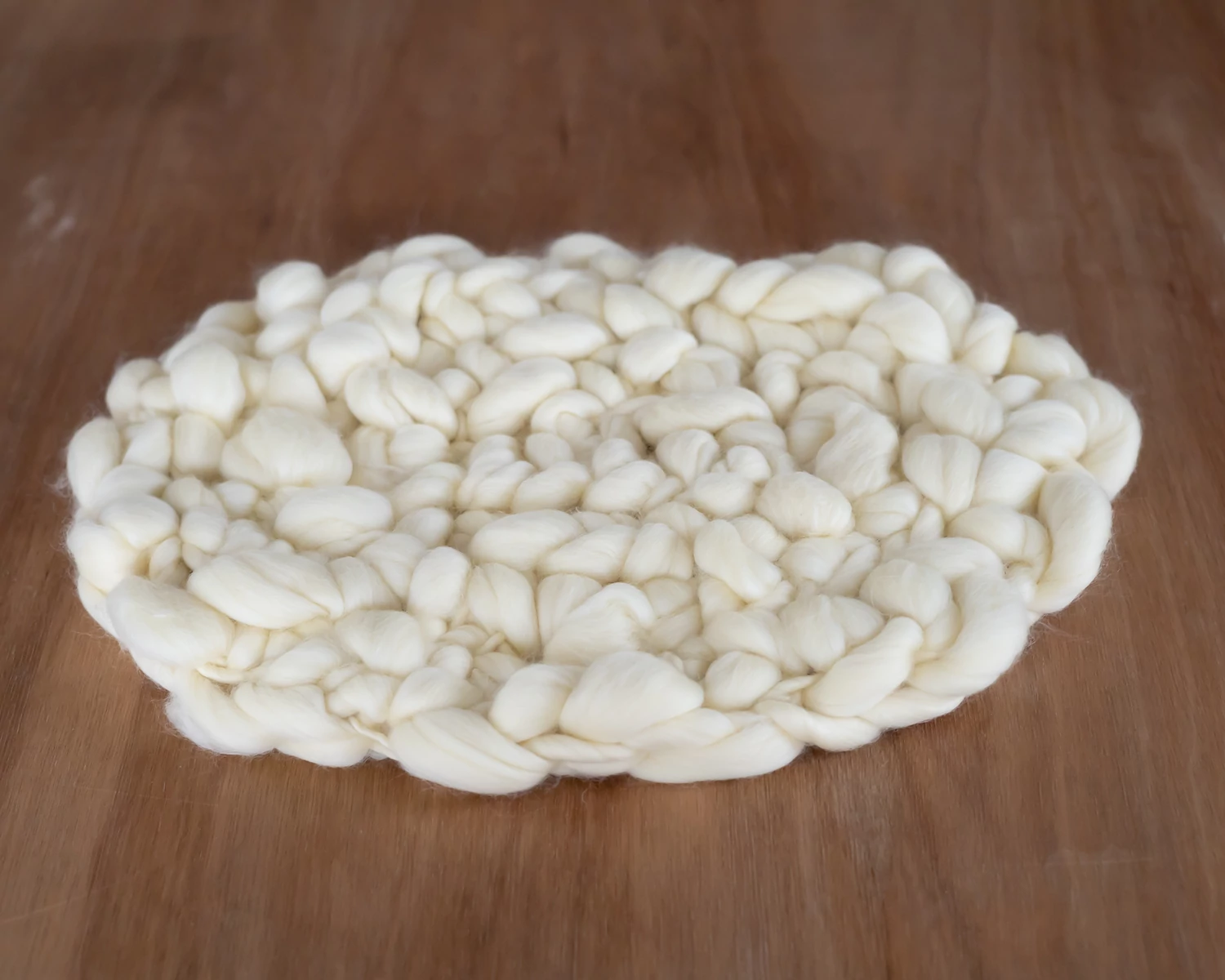 Ovális vanília sárga gyapjú alátét újszülött fotózáshoz. Meleg, vidám árnyalata jól illik fiús és lányos fotózásokhoz is, különösen természetes fényben. Rusztikus textúrája kiemeli a baba vonásait, miközben puha alapot biztosít. Kosarakban, kiságyakban vagy egyéb kreatív stylinghoz használható. Kézzel készült, prémium 100% gyapjúból.