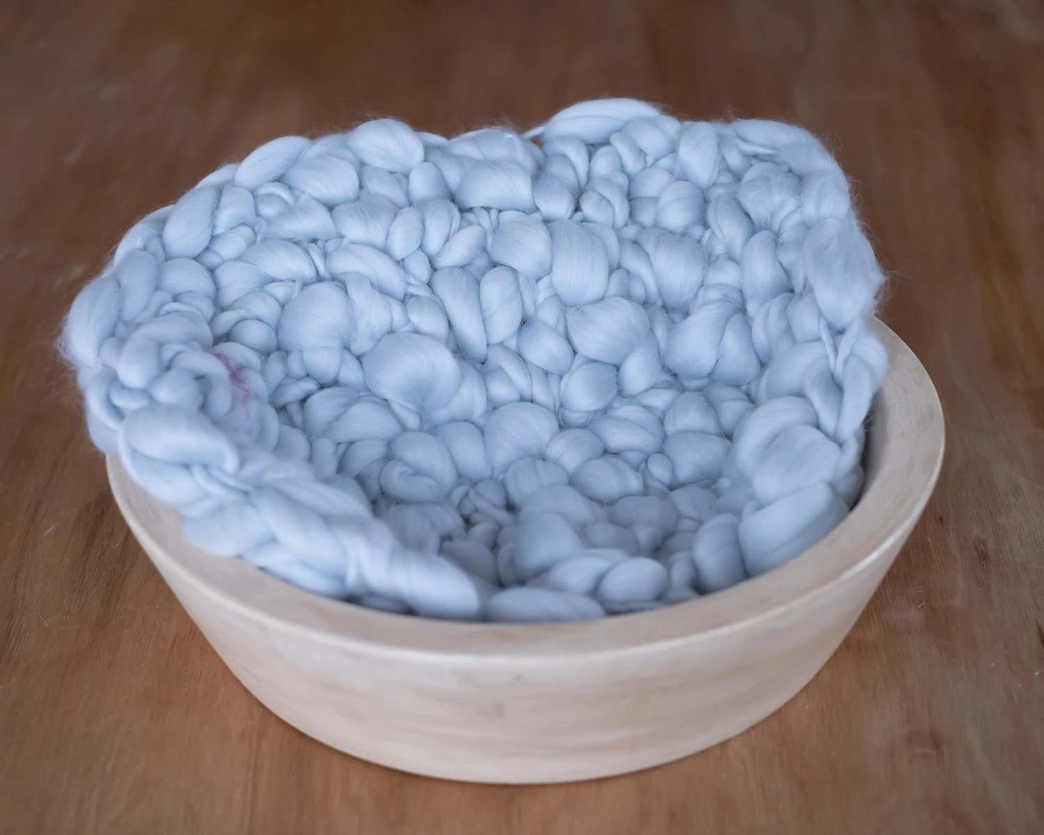 Ovális világoskék gyapjú alátét újszülött fotózáshoz