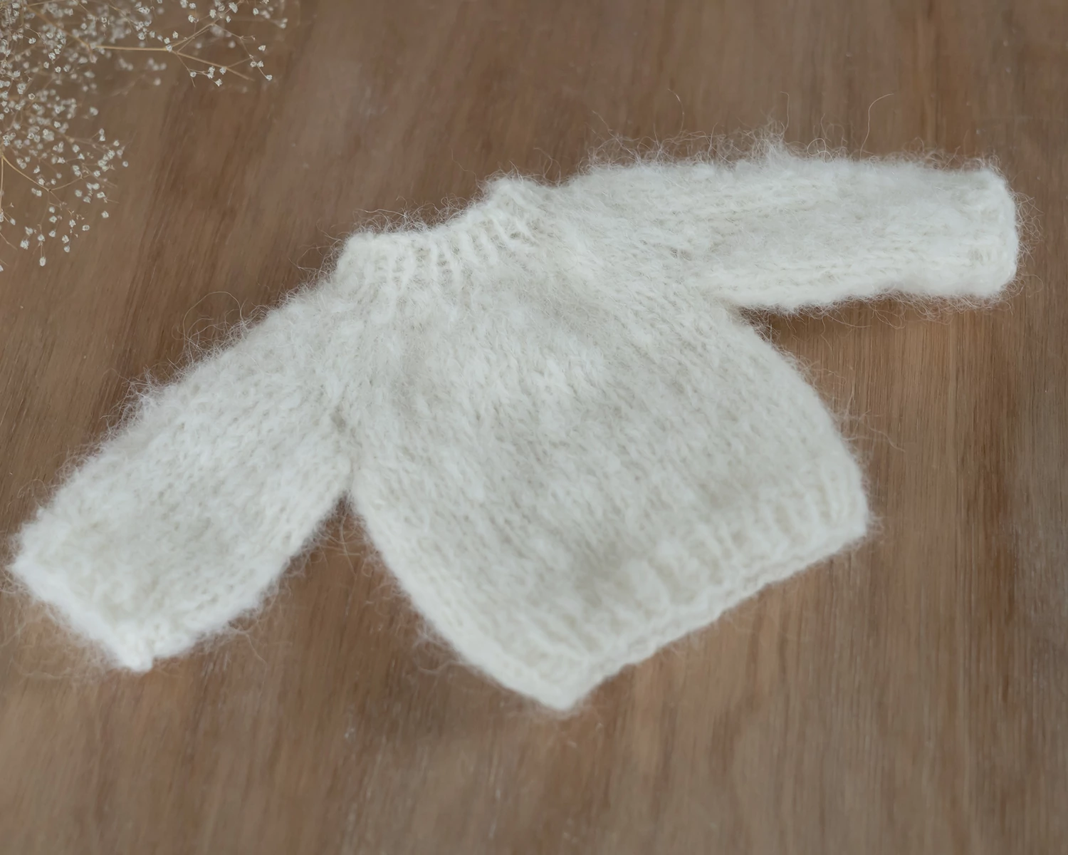 RENDELHETŐ Törtfehér, mohair, kézzel kötött újszülött pulóver