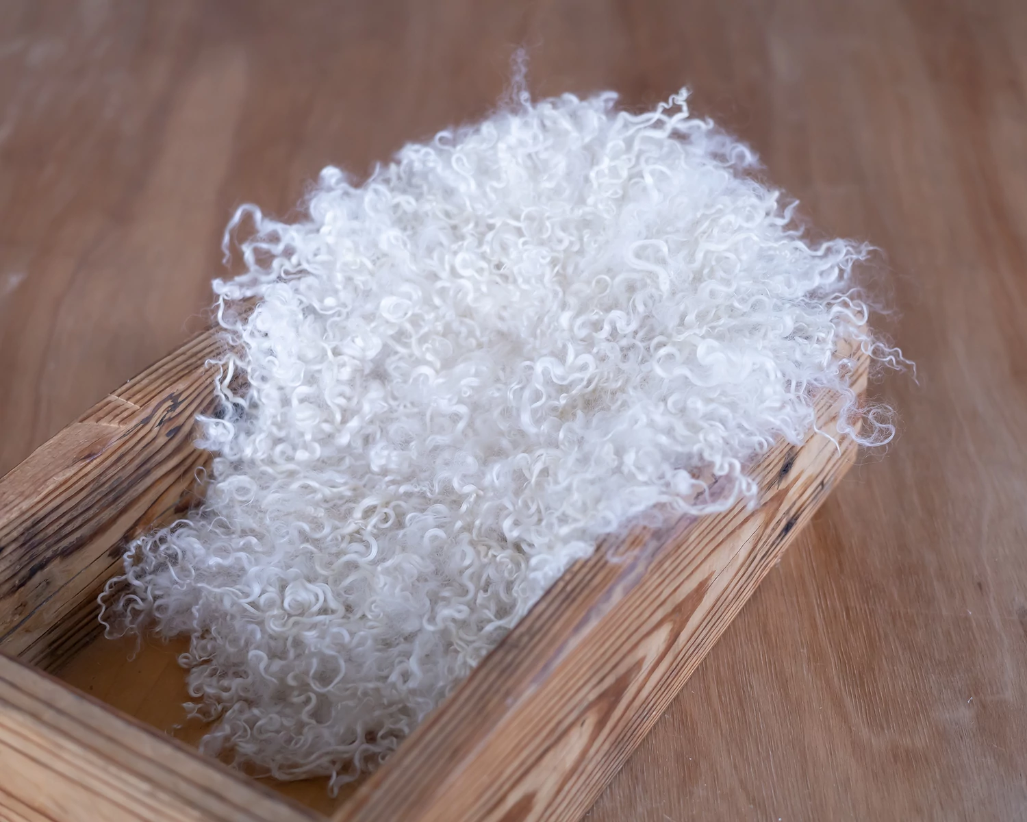 Kisméretű, kézzel nemezelt, göndör gyapjú flokati szőrme újszülött fotózásokhoz.